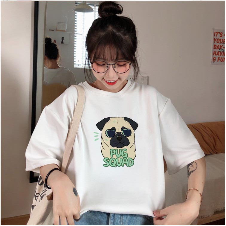 Giới thiệu Áo thun đôi nam nữ tay lỡ PUG SQUAD đơn giản dễ thương dáng unisex form rộng oversize basic tee phông streetwear