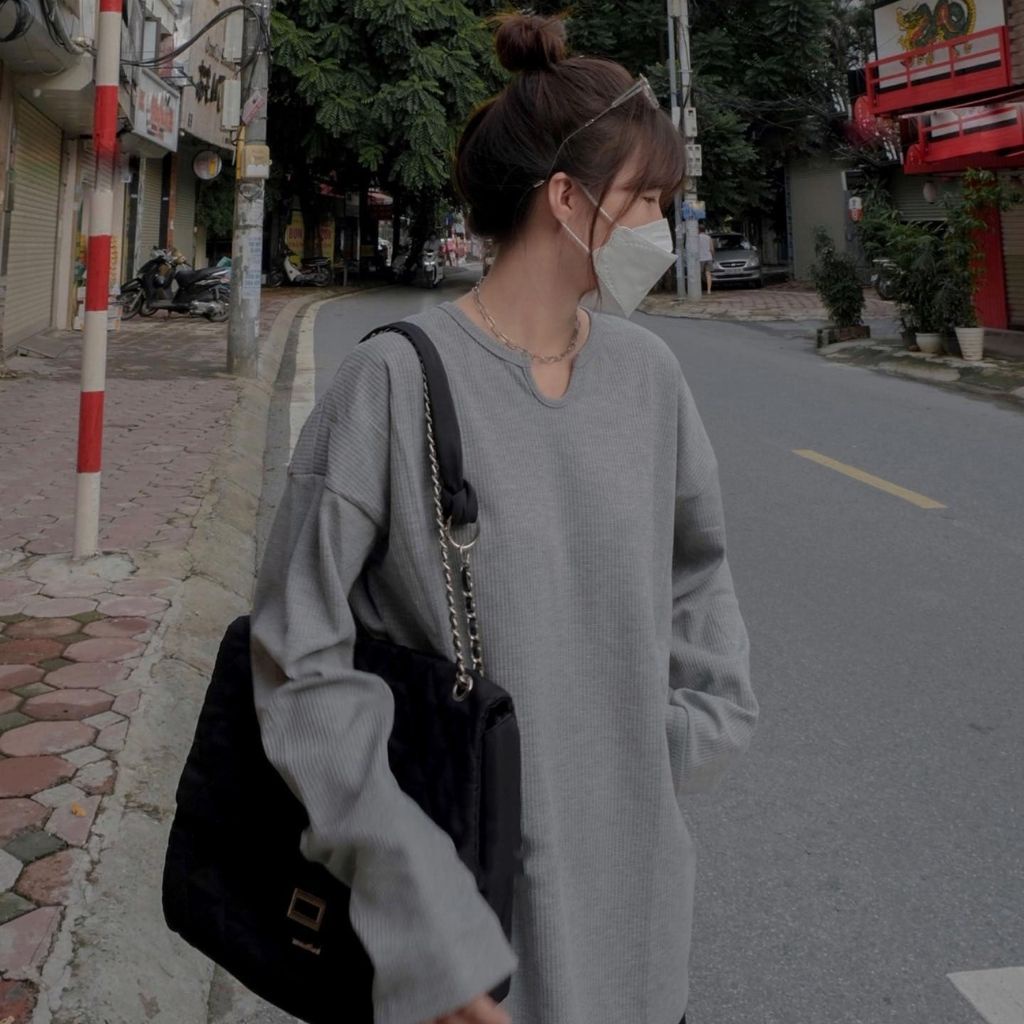 Giới thiệu Áo thun gân cổ U dài tay basic oversize xẻ bên