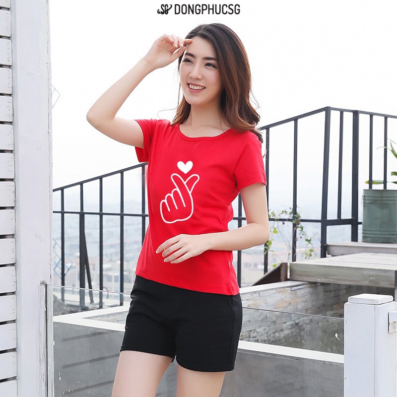 Giới thiệu Áo thun gia đình màu đỏ bắn tim GD402D thun cotton dày dặn DONGPHUCSG