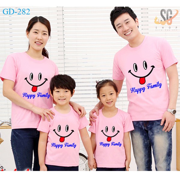 Giới thiệu Áo thun gia đình mẫu happy family màu hồng thun cotton 4 chiều dày dặn GD282HN | SG