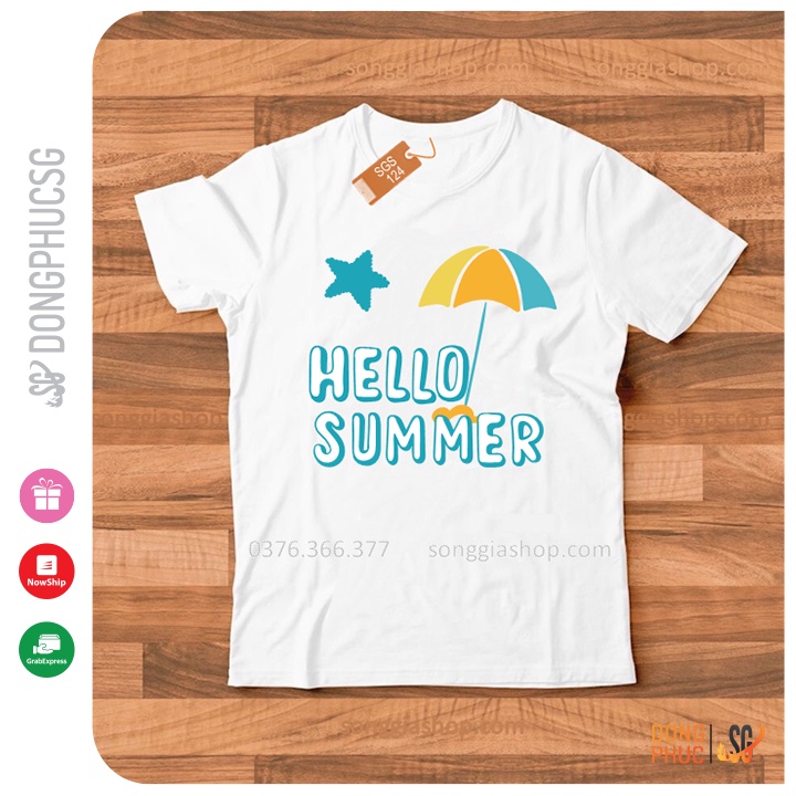 Giới thiệu Áo thun hội nhóm unisex nam nữ gia đình HELLO SUMMER phông màu trắng thun cotton mềm mịn SGS124 | SG