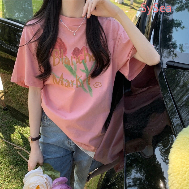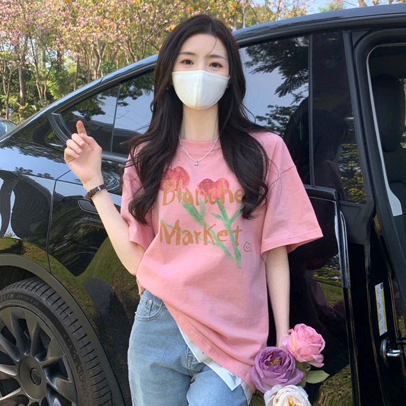 Vải / Chất liệu: Polyester / Polyester (Sợi Polyester) Hàm lượng thành phần: 31% (bao gồm) - 50% (bao gồm) Thiết kế: in Phiên bản áo: Dáng rộng Phong cách: ngọt ngào và tươi mát Chiều dài / Chiều dài tay áo: Tay áo thường / Tay ngắn Loại cổ áo: cổ tròn