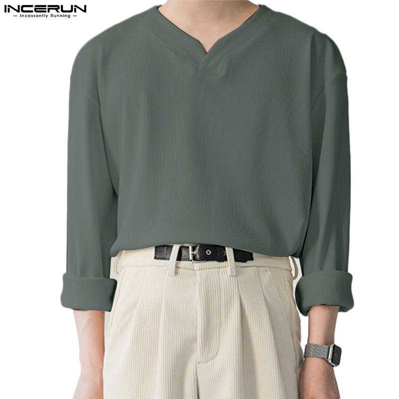 Áo thun INCERUN tay dài màu trơn thời trang dành cho namGiá ZF