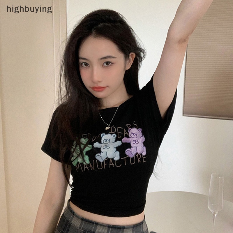 Giới thiệu Áo Thun Lửng Ngắn Tay Cổ Tròn In Hình Gấu Hoạt Hình Cho Nữ