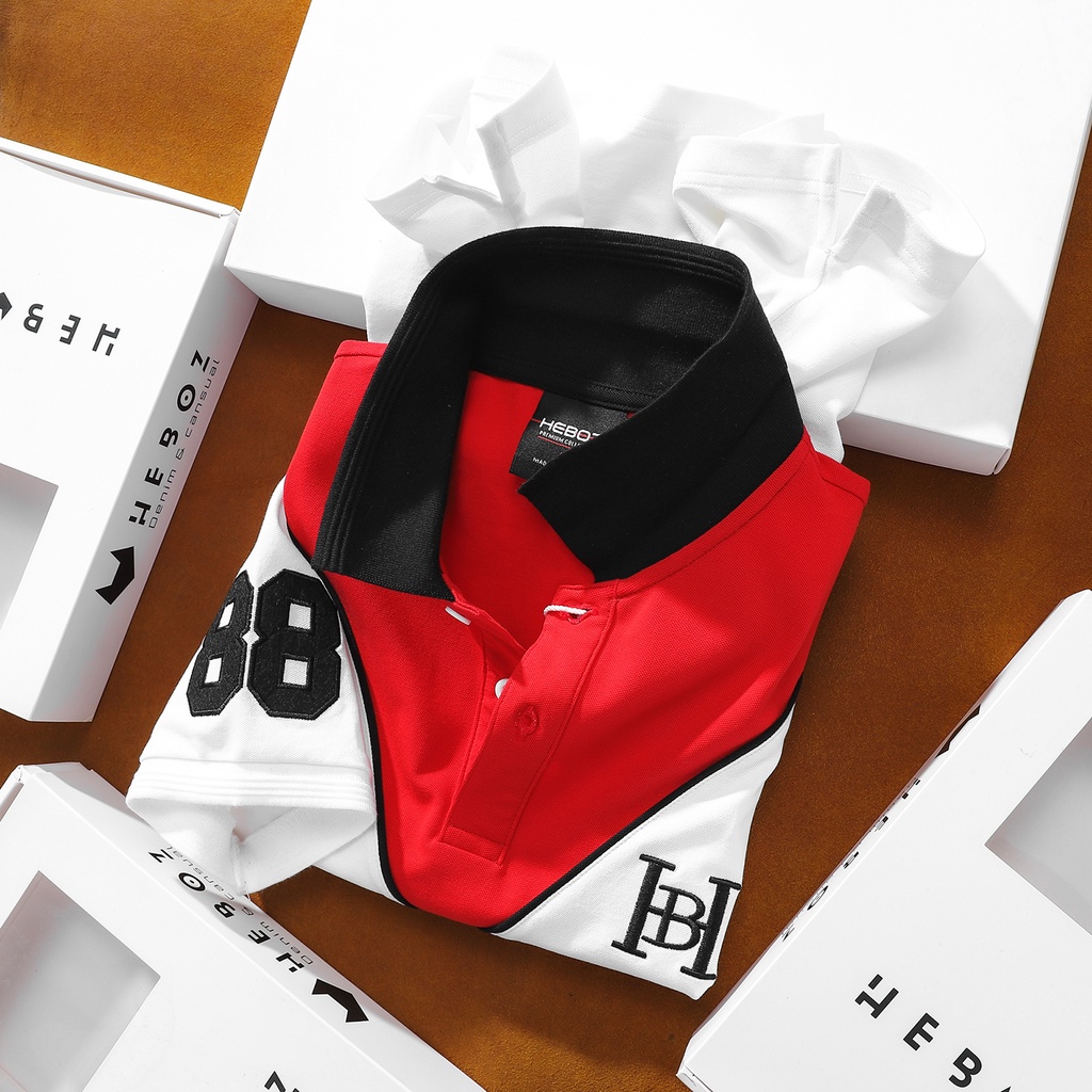 Giới thiệu Áo thun nam có cổ, áo polo HEBOZ phối red 88, chất vải cotton cá sấu 4 chiều cao cấp 2M - 00001235