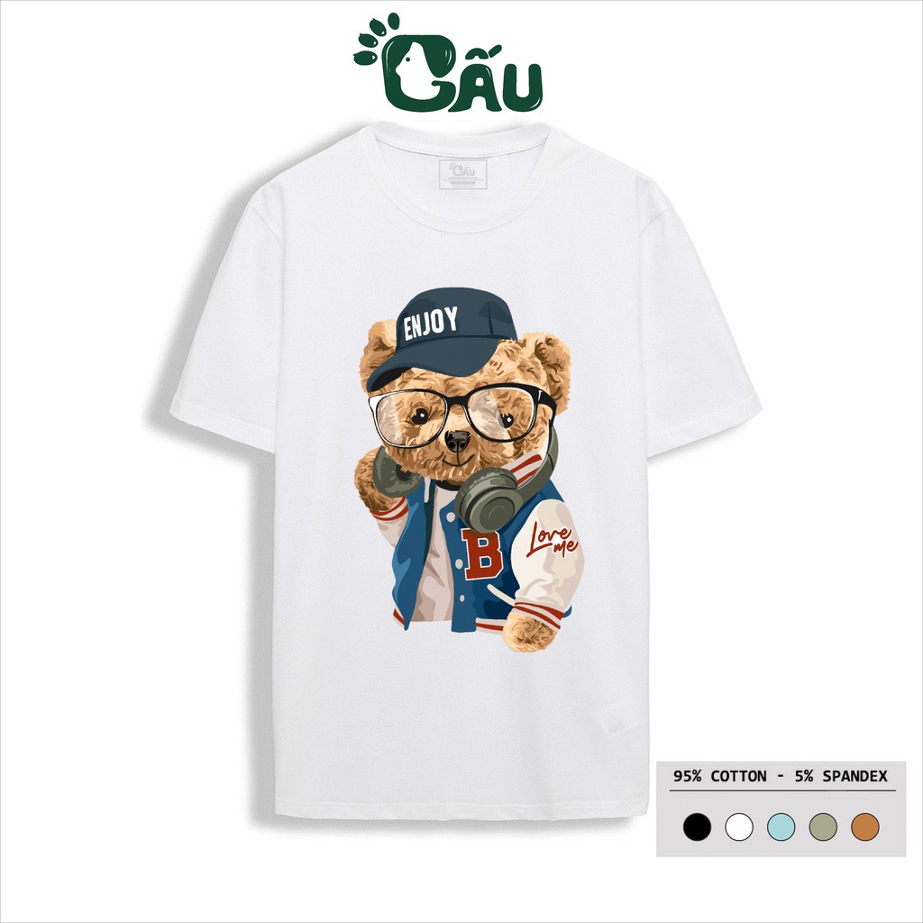 Giới thiệu Áo thun nam GẤU 194 Gấu Teddy ENJOY Ngầu cổ tròn tay ngắn vải coton co dãn, dày dặn, form regular fit - Gấu Cực Ngầu
