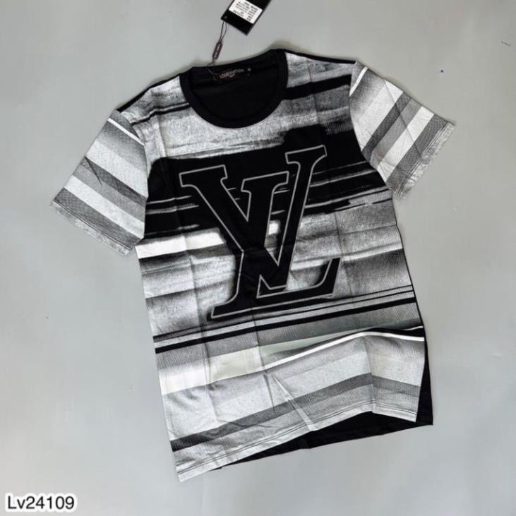 Áo Thun Nam LV Chữ Loang Ống Tay Kẻ Vạch Siêu Hot - Áo Phông Nam Logo LV Siêu HotGiá CBE