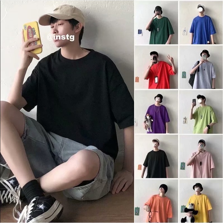 Thời Trang Nam > Áo > Áo Thun > Áo Thun nam Tay Ngắn áo thun tay lỡ Cổ Tròn áo phông nam Màu Sắc Đơn Giản áo phông rộng phong cách Hàn Quốc áo thun kiểu nữ thời trang áo thun thể thao nam