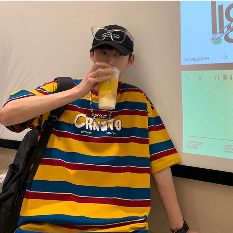 Giới thiệu Áo Thun Ngắn Tay Form Rộng Họa Tiết Sọc Ngang Trẻ Trung Dành Cho Cả Nam Và Nữ