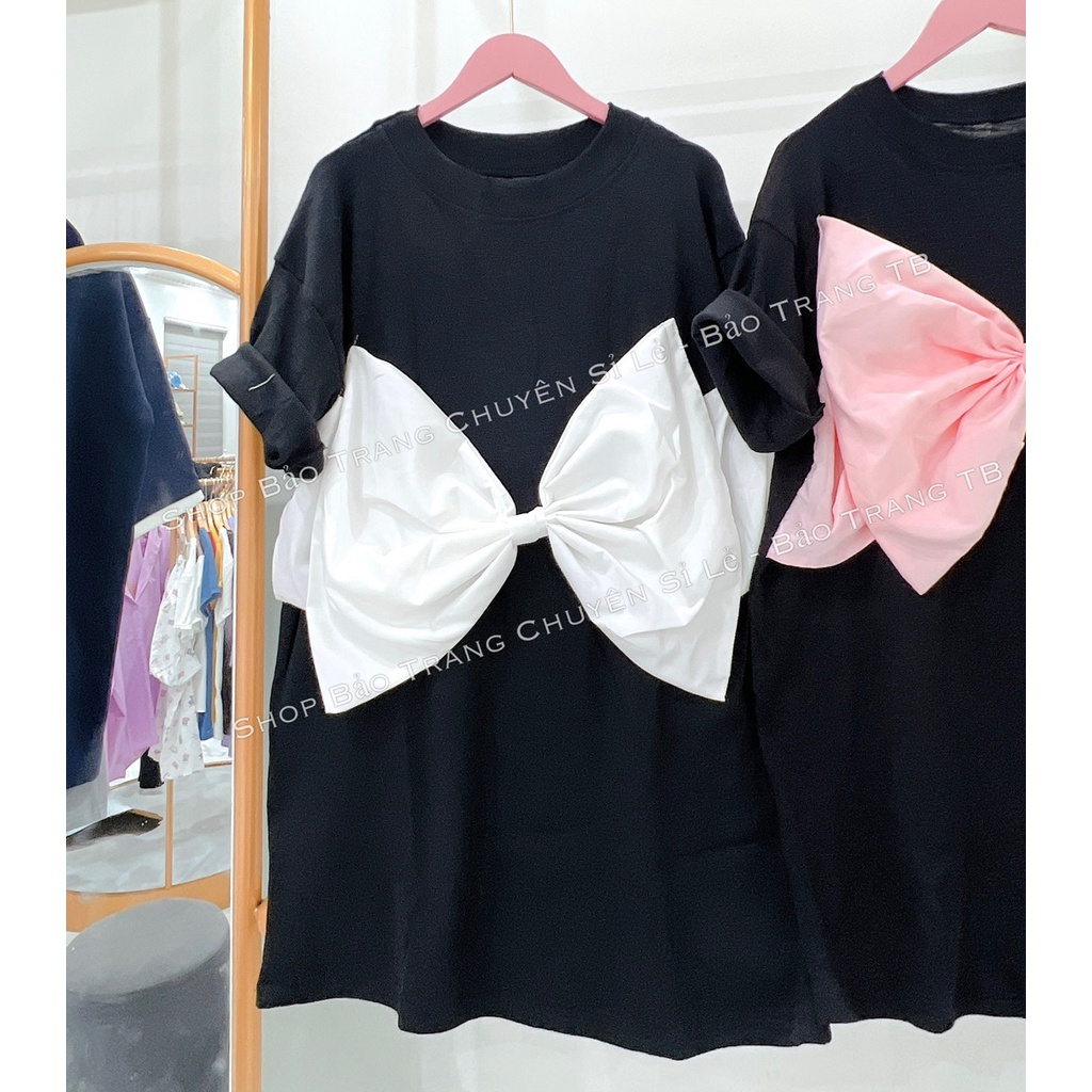Giới thiệu Áo Thun Nơ To Trước Ngực Cực Đẹp 2 Màu Chất Bo Tăm Form Rộng Dáng Dấu Quần