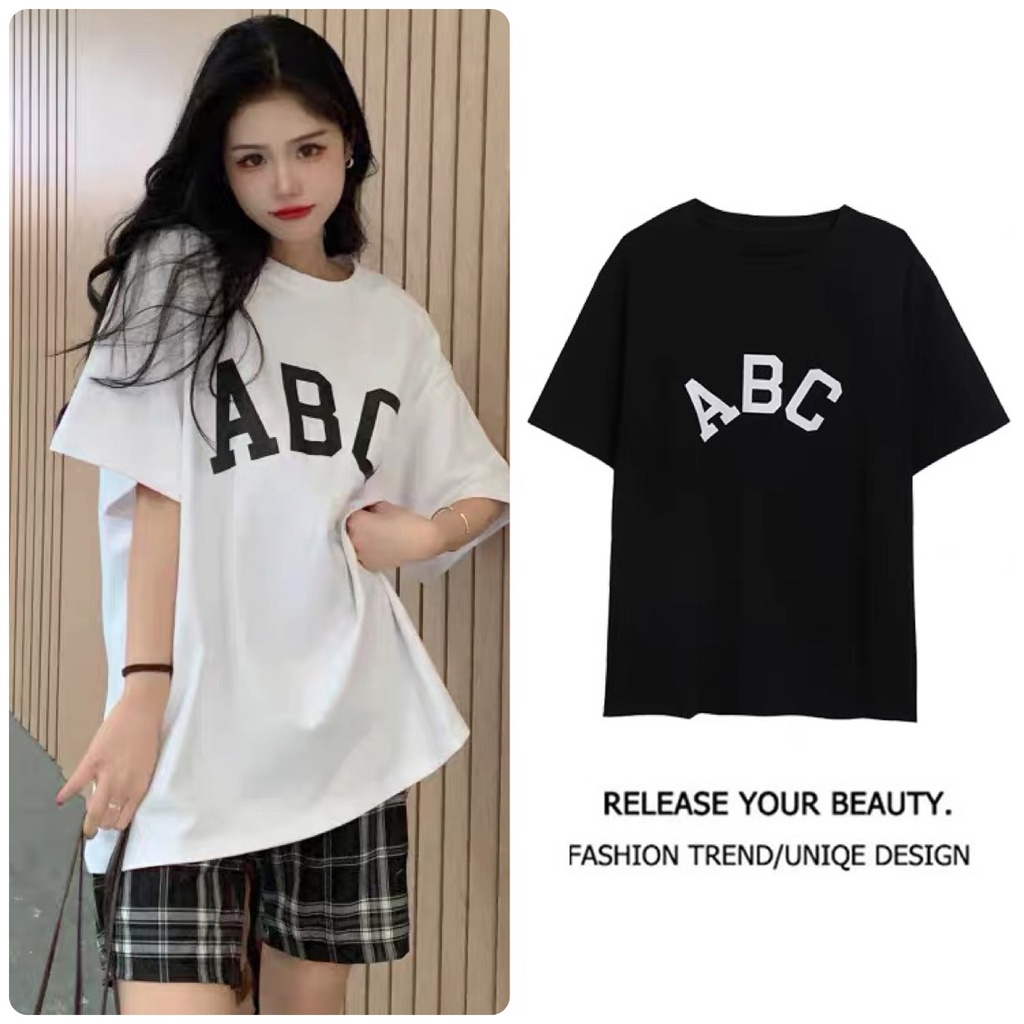 Giới thiệu Áo thun nữ ABC form rộng tay lỡ chất vải Cotton NHUNG cao cấp mềm mịn, áo phông đen trắng Unisex nam nữ đẹp