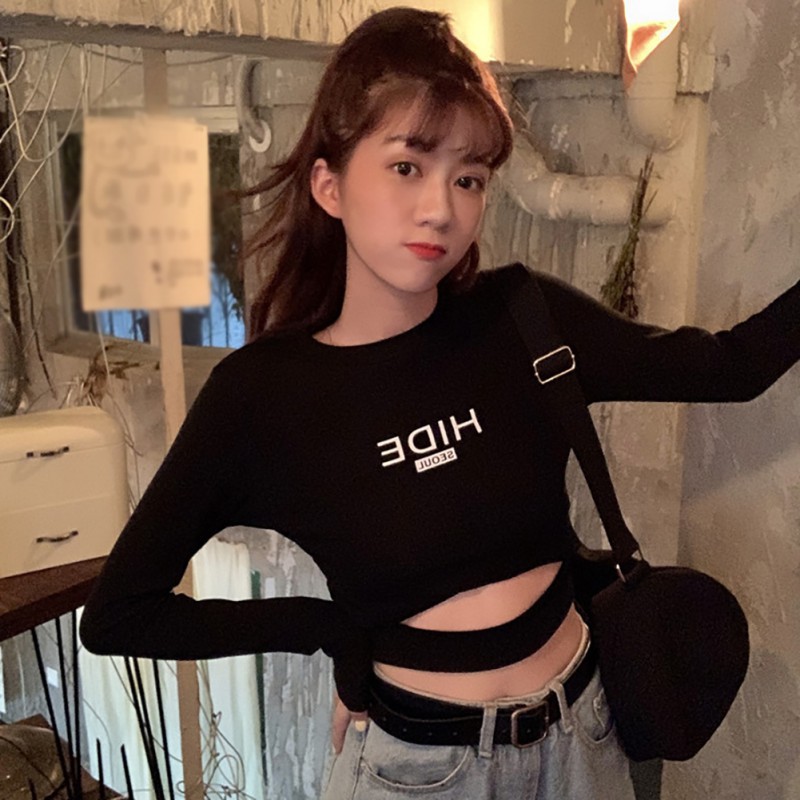 Áo thun nữ cổ tròn dài tay in họa tiết chữGiá GLMR