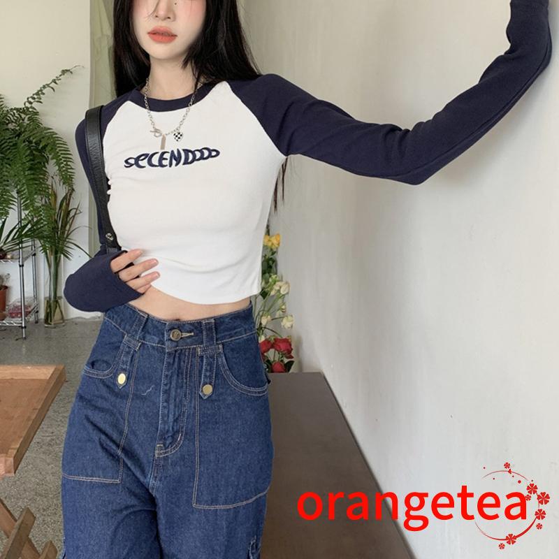 Thiết KẾ: Áo crop top đan dài tay, cổ tròn, phối màu, họa tiết chữ, kiểu dáng hàng ngày thích hợp mặc vào mùa xuân, thu.