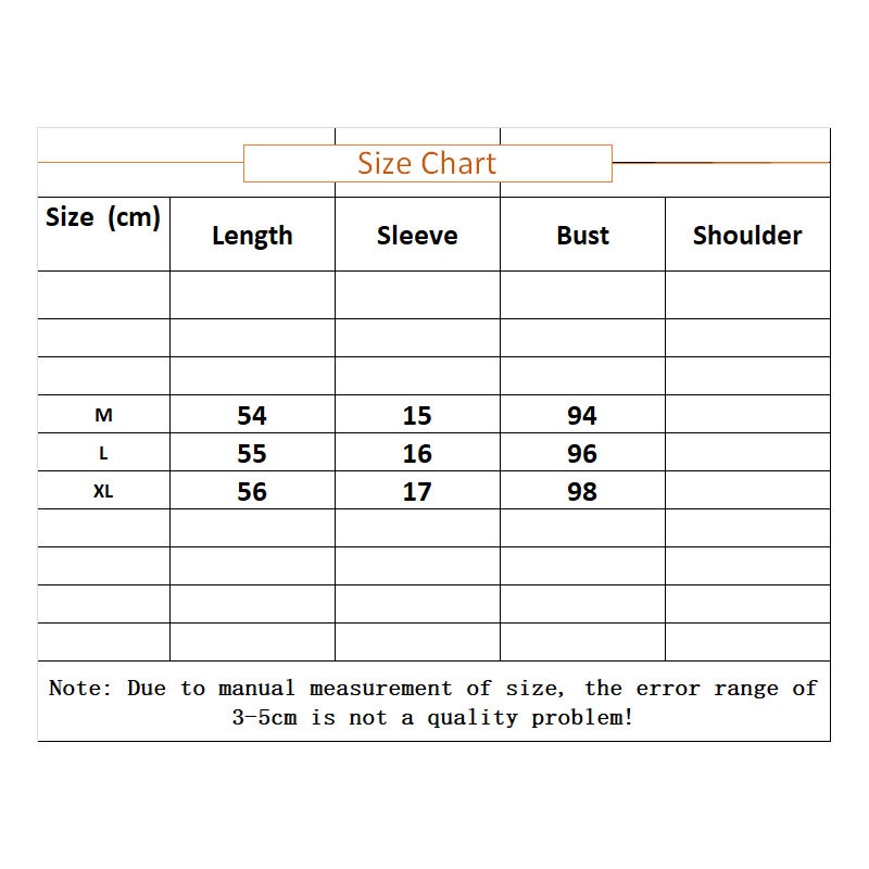 [Thông Tin khuyến mãi] Thông tin giảm giá mới nhất, xem thông báo trên trang chủ của cửa hàng! [Mô Tả Sản phẩm] Chất liệu: bông + sợi polyester Chỉ để tham khảo và không phải tiêu chuẩn thực tế Kích thước: (Tổ chức: cm) M: Chiều dài: 54 Chiều dài tay áo: 15 Lật tẩy: 94 L: Chiều dài: 55 Chiều dài tay áo: 16 Lật tẩy: 96 Xl: Chiều dài: 56 Chiều dài tay áo: 17 Lật tẩy: 98 Lưu ý: Do đo lường thủ công của kích thước, phạm vi sai số cho phép 3-5 cm không phải là vấn đề chất lượng! [Mô Tả cửa hàng] 1.Chào mừng bạn đến theo dõi chúng tôi, chúng tôi cập nhật các sản phẩm chất lượng cao và rẻ tiền mỗi ngày. 2.Sau khi đơn hàng thành công, chúng tôi sẽ gửi đi trong thời gian sớm nhất trong vòng 48h. Các bạn nhớ lấy hàng cho kịp thời gian nhé! 3.Một số quần áo và quần denim nếu không cắt lỗ cúc thì đó không phải là sản phẩm bị lỗi. Nếu bạn không hiểu cách cắt các nút, bạn có thể hỏi chúng tôi. 4.Nếu bạn hài lòng với sản phẩm và dịch vụ của chúng tôi, xin vui lòng khen ngợi năm sao! Nếu bạn không hài lòng, bạn có thể phản hồi cho chúng tôi!
