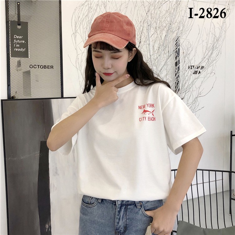 Giới thiệu Áo Thun Nữ Tay Lỡ In Logo Con Cá NEW YORK CITY BEACH
