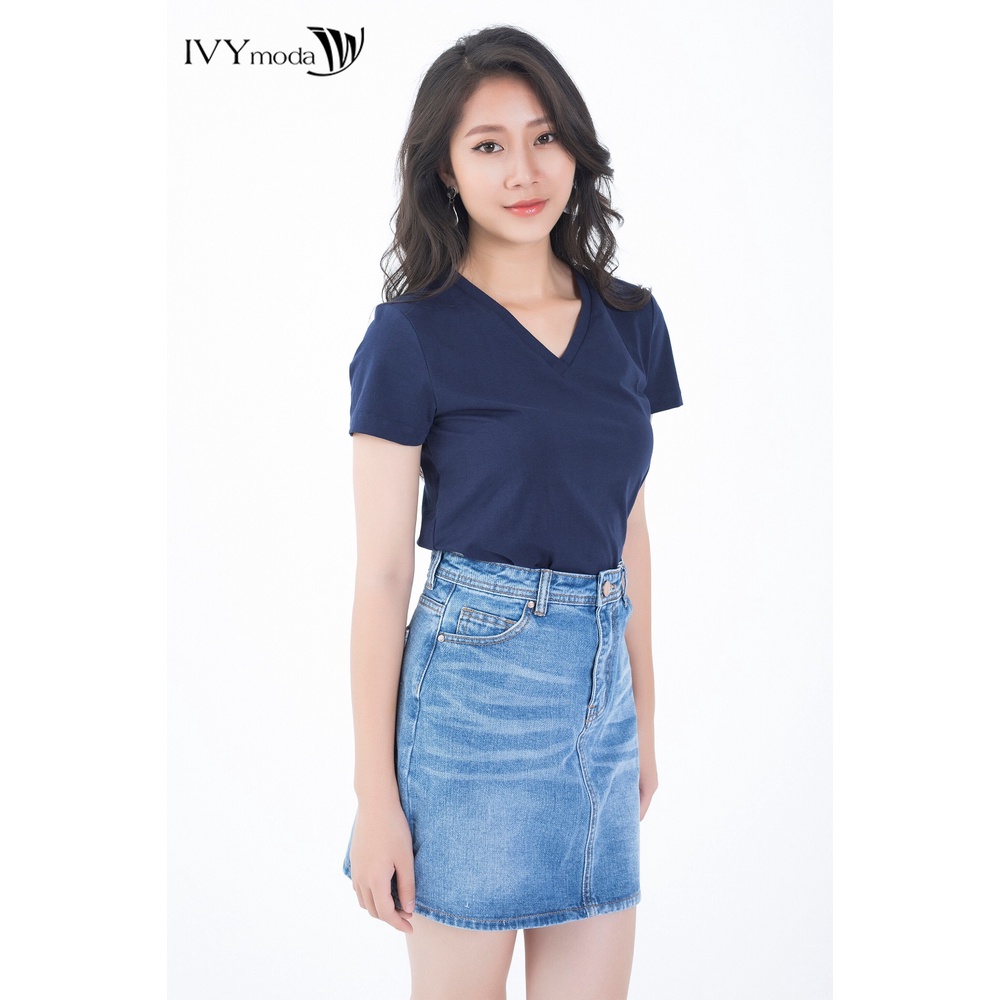 Giới thiệu Áo thun nữ trơn cổ V IVY moda MS 57P0155