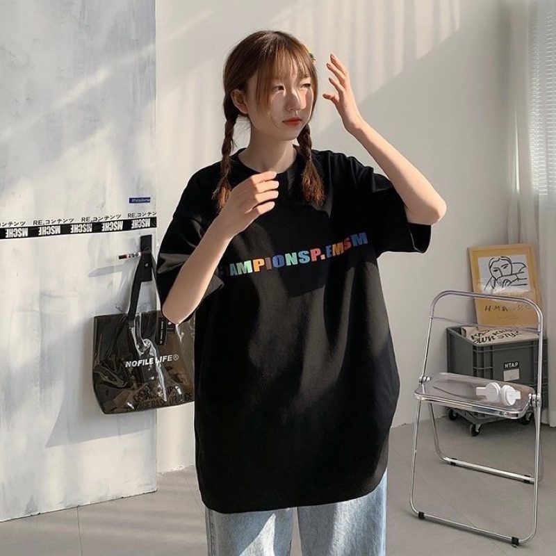 Áo thun phông nam nữ PINK tay lỡ form rộng CHAMPIONS Unisex