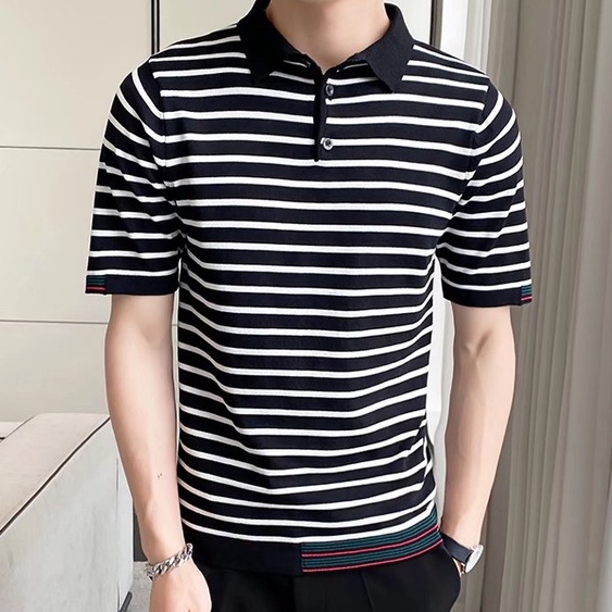 Thời Trang Nam > Áo > Áo Polo > Áo Thun Polo Cổ Bẻ Họa Tiết Kẻ Sọc Thời Trang Chất Lượng Cao Cho Nam Hàn Quốc áo phông rộng simple Sọc áo polo nam fashion áo phông nam có cổ áo thun nam có cổ from rộng áo thun nam tay lỡ