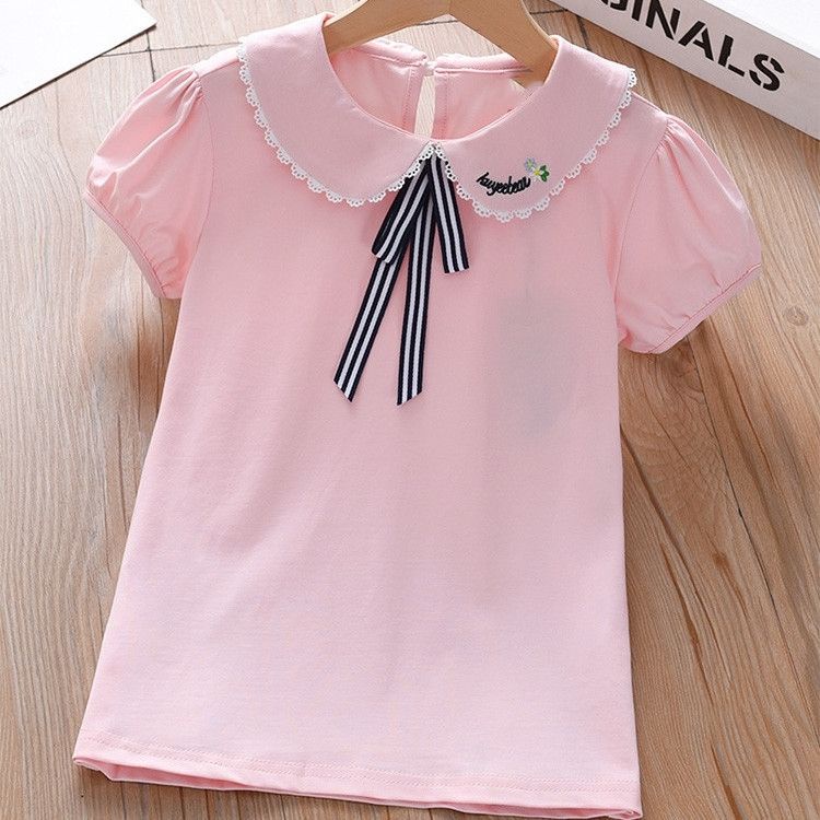 Cô gái Cotton Nơ Áo phông ngắn tay Mùa hè Phong cách phương Tây Ve áo mới Phong cách công chúa Áo sơ mi polo Búp bê Cổ áo trên cùng