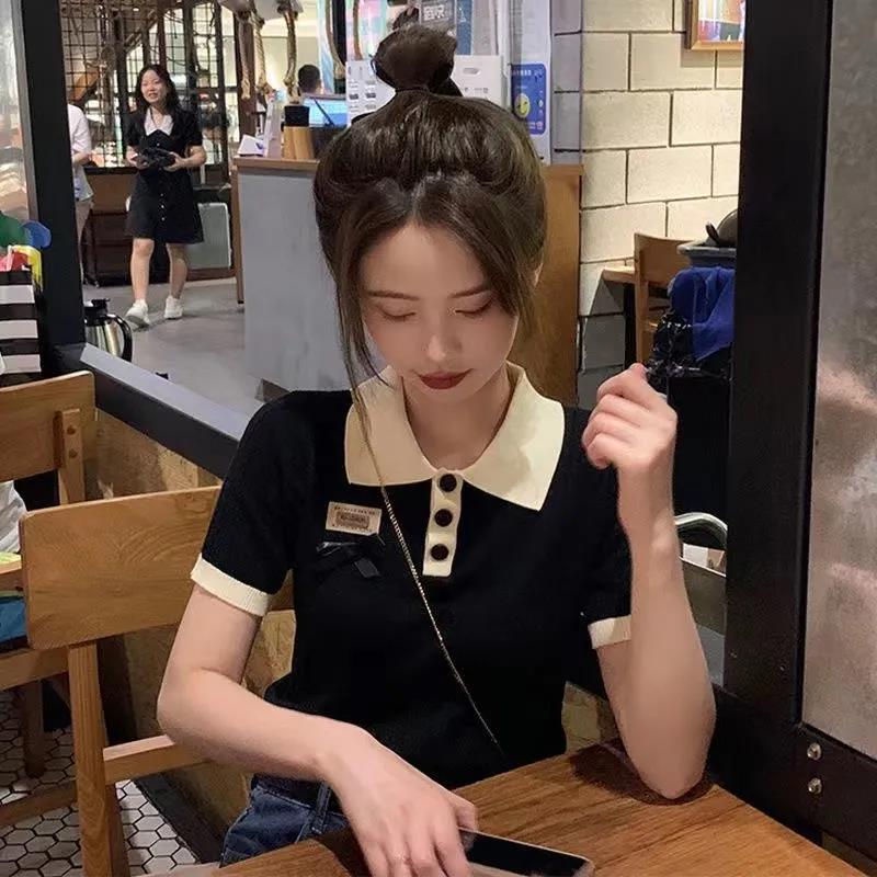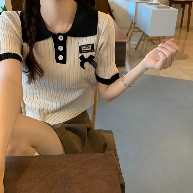 Giới thiệu Áo Thun polo Dệt Kim Mỏng Tay Ngắn Đính Nơ Xinh Xắn Cho Nữ tao bao