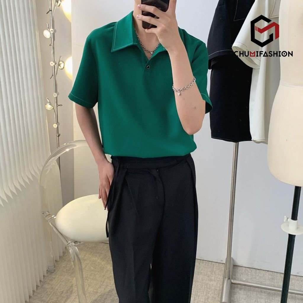 Giới thiệu Áo thun polo nam cổ bẻ CHUMI vải cotton may chỉ nổi form rộng dáng suông hottren hàn quốc 2022 at 316