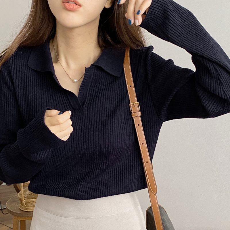 Giới thiệu Áo thun polo Tay Dài Phong Cách Hàn Quốc Cổ Điển Áo Dệt Kim Nữ NZ-TX-447