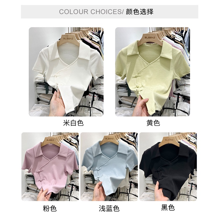 Giới thiệu Áo Thun polo Tay Ngắn Cài Nút Phong Cách Trung Hoa Cổ Điển Độc Đáo Thời Trang Mùa Hè Cho Nữ