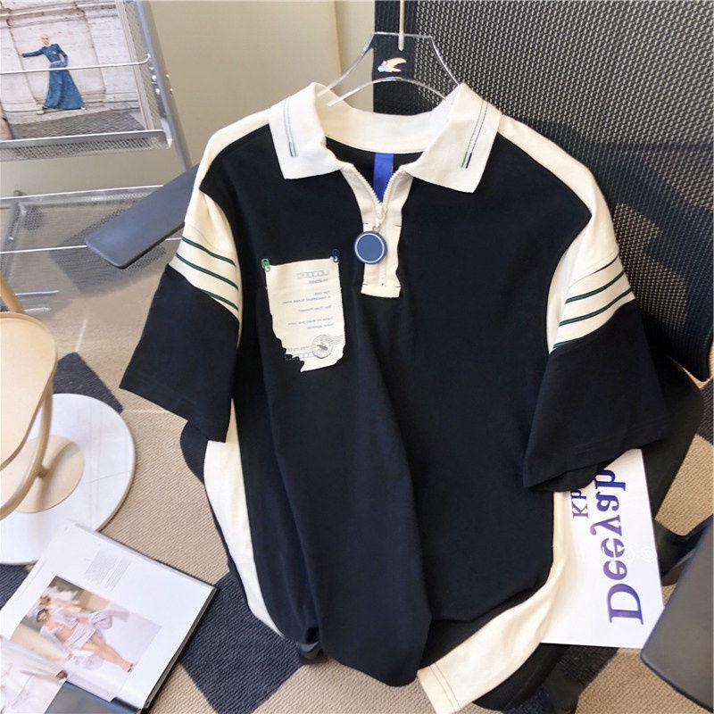 Giới thiệu Áo Thun POLO Tay Ngắn Dáng Rộng Màu Sắc Tương Phản Thời Trang Mùa Hè Dành Cho Nam Và Nữ
