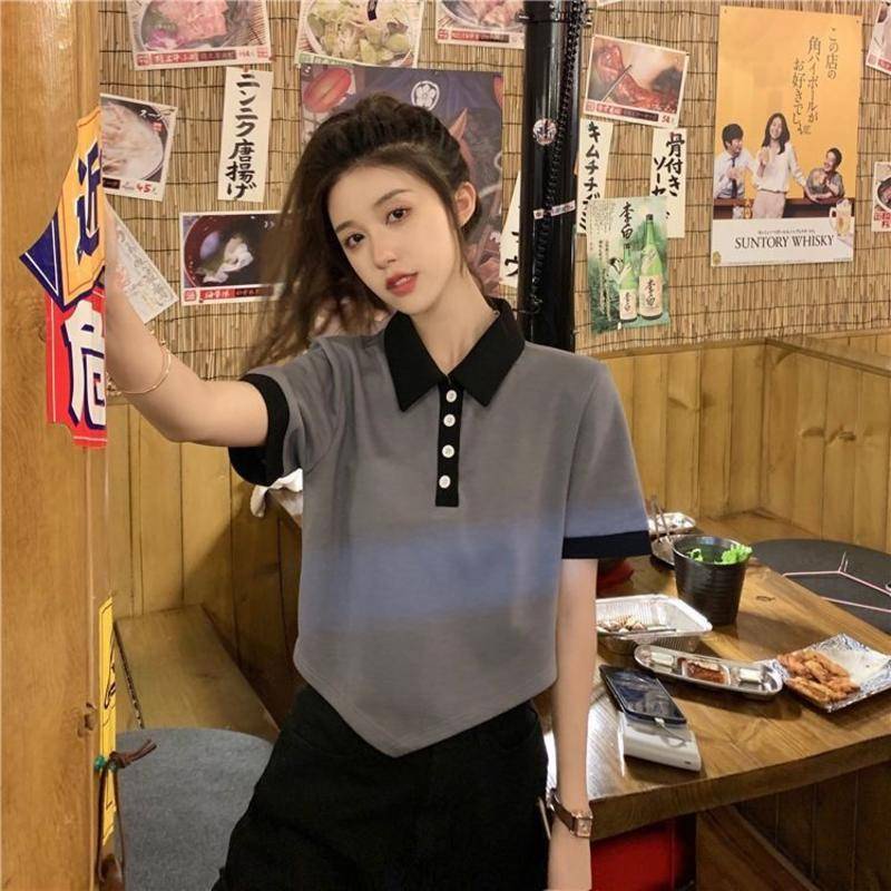Giới thiệu Áo Thun polo Tay Ngắn Màu Sắc Tương Phản Thời Trang Mùa Hè Dành Cho Nữ