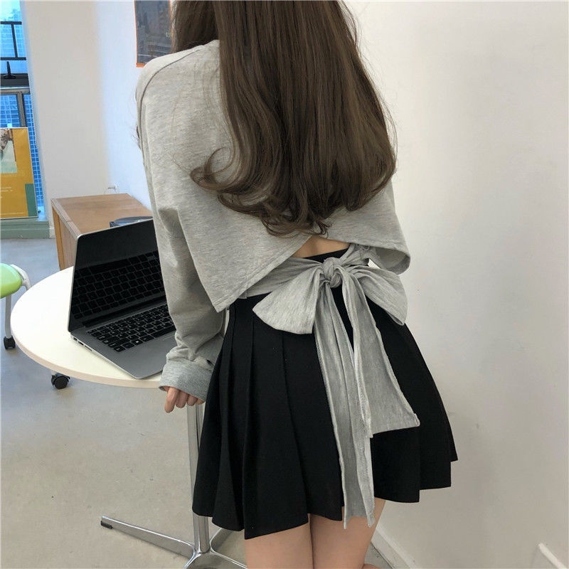 Giới thiệu Áo thun RENJIANVSHENG 168541 tay dài cổ tròn dáng rộng cột nơ xinh xắn trẻ trung phong cách Hàn Quốc