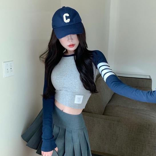 Giới thiệu Áo Thun Tay Dài Cổ Tròn Phối Màu Sắc Tương Phản Phong Cách Hàn Quốc Thời Trang Cho Nữ