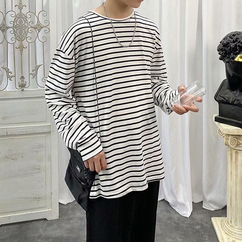 Giới thiệu Áo Thun Tay Dài Dáng Rộng Họa Tiết Kẻ Sọc Phong Cách Hàn Quốc Thời Trang Trẻ Trung Cho Nam