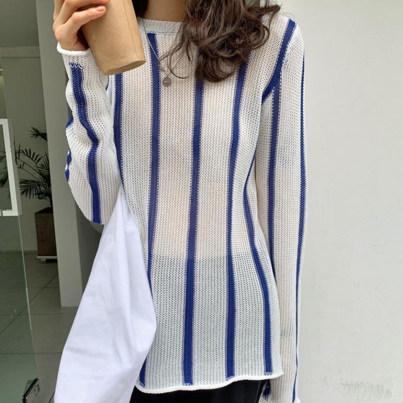 Giới thiệu Áo Thun Tay Dài Kẻ Sọc Dọc Màu Sắc Phong Cách Hàn Quốc Thời Trang Mùa Hè Cho Nữ