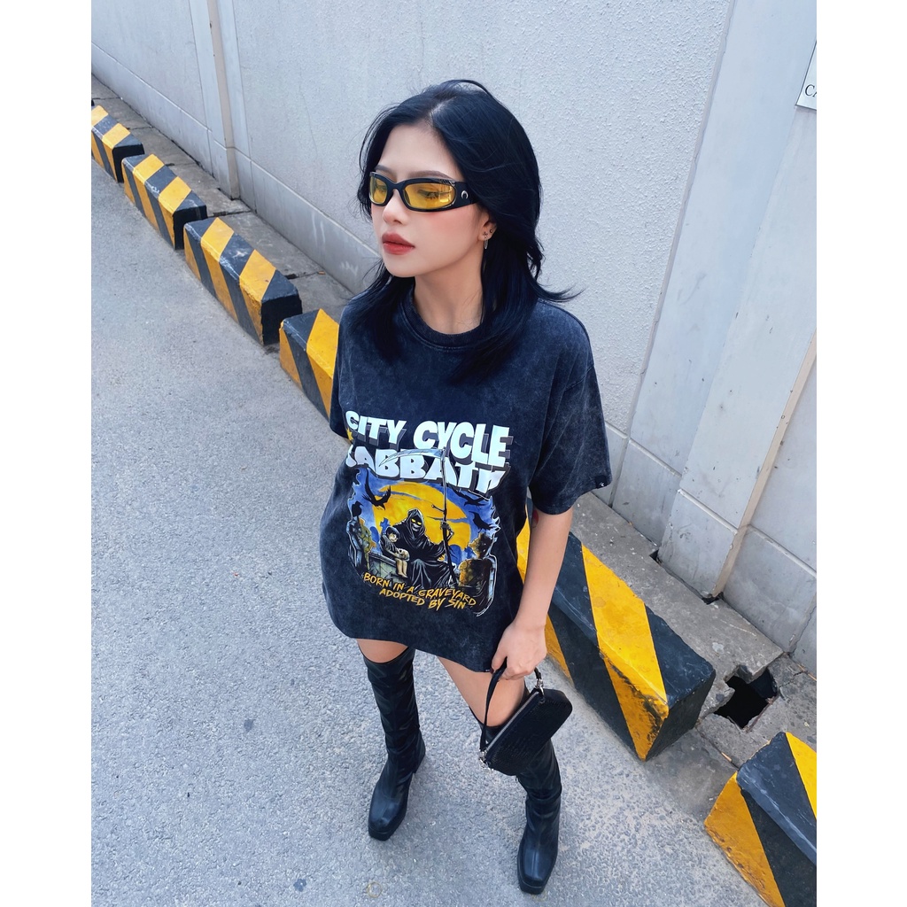 Giới thiệu Áo thun tay lỡ Acid Sabbath oversize City Cycle - áo phông oversize cotton unisex in hình Local Brand