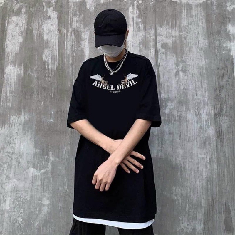 Giới thiệu ÁO THUN TAY LỠ ANGEL DEVIL FORM UNISEX (hình chụp thật)