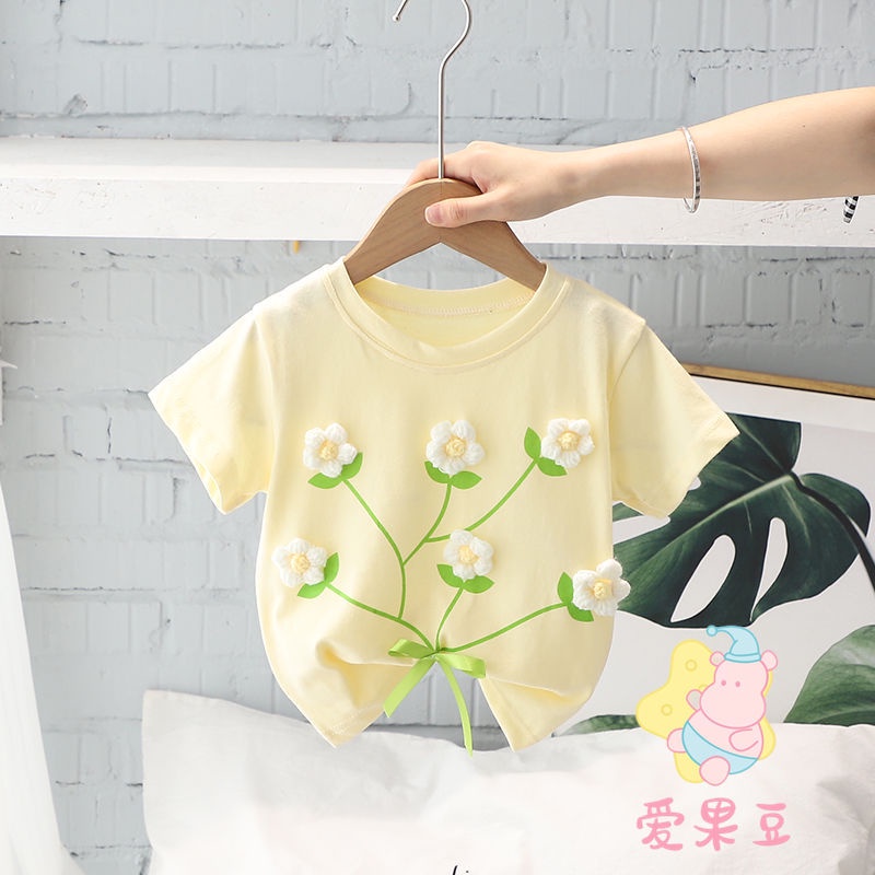 Giới thiệu Áo Thun Tay Ngắn Chất Liệu Cotton In Họa Tiết Hoa 3D Thời Trang 2022 Cho Bé Gái
