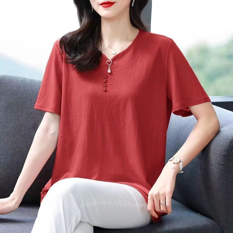 Giới thiệu Áo Thun Tay Ngắn Cổ Chữ V Form Rộng Thời Trang Mùa Hè Mới Cho Phụ Nữ Trung Niên