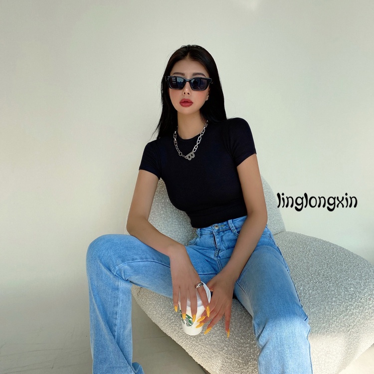 Giới thiệu Áo Thun Tay Ngắn Dáng Ôm Màu Sắc Trơn Thời Trang Mùa Hè Cho Nữ Linglongxi2
