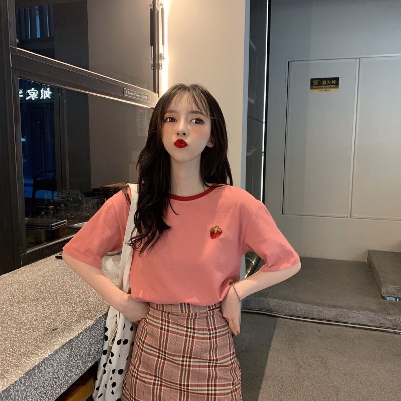 Giới thiệu Áo Thun Tay Ngắn Dáng Rộng Thêu Hình Dâu Tây Phong Cách Hàn Quốc Dễ Phối Đồ Thời Trang Cho Nữ Áo phông Nữ NZ-TX-171