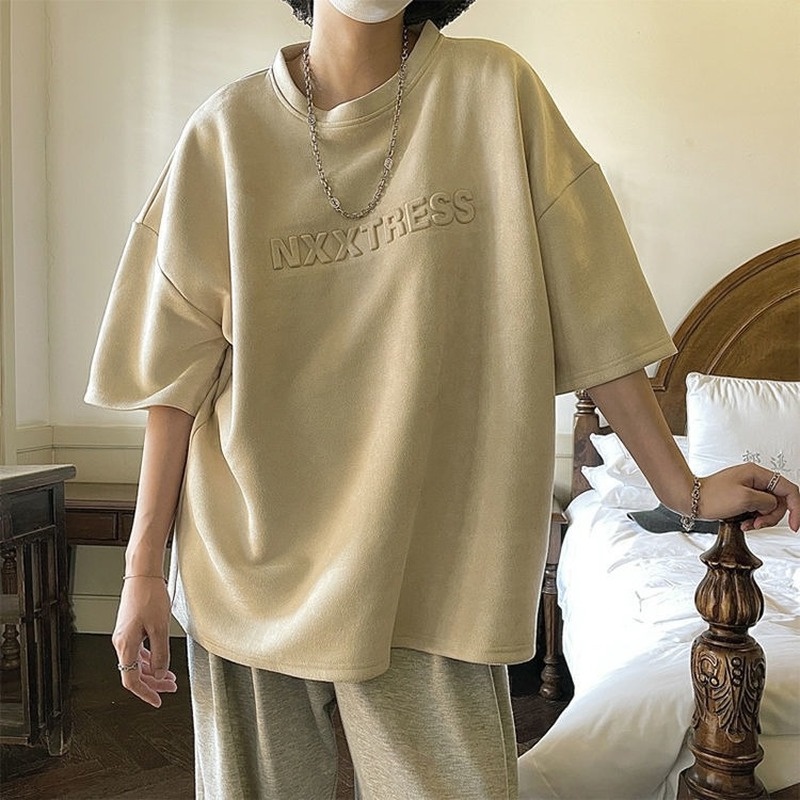 Vải / Chất liệu: Polyester / Polyester (Sợi Polyester) Nội dung thành phần: 96% (bao gồm) - 100% (độc quyền) Loại cổ áo: cổ tròn Phù hợp: rộng Chiều dài tay áo: tay áo ngắn Chi tiết kiểu quần áo: đồng màu, chữ cái Phong cách: phong cách Hồng Kông Độ tuổi áp dụng: Vị thành niên (dưới 18 tuổi)