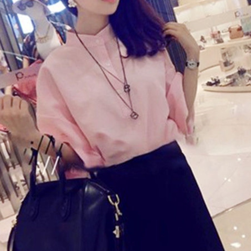 Giới thiệu Áo Thun Tay Ngắn Phong Cách Preppy 165214 Áo Thun Cổ Đứng Dáng Rộng Màu Trơn Thời Trang Mùa Hè Dễ Phối Đồ