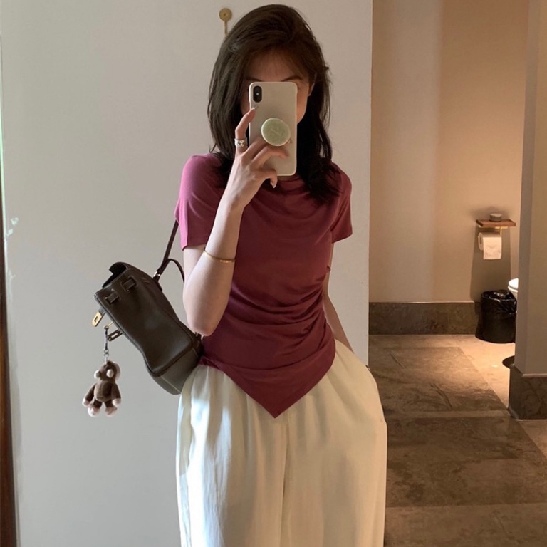 Giới thiệu Áo Thun Tay Ngắn Vải Lụa Lạnh Lệch Vai Thiết Kế Sành Điệu Cho Nữ