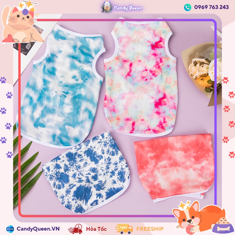 Giới thiệu [Áo Thun Thú Cưng] ⚡ Thiết Kế 3 Lỗ Màu Sắc Nhuộm Loang Dễ Thương Dành Cho Chó Mèo