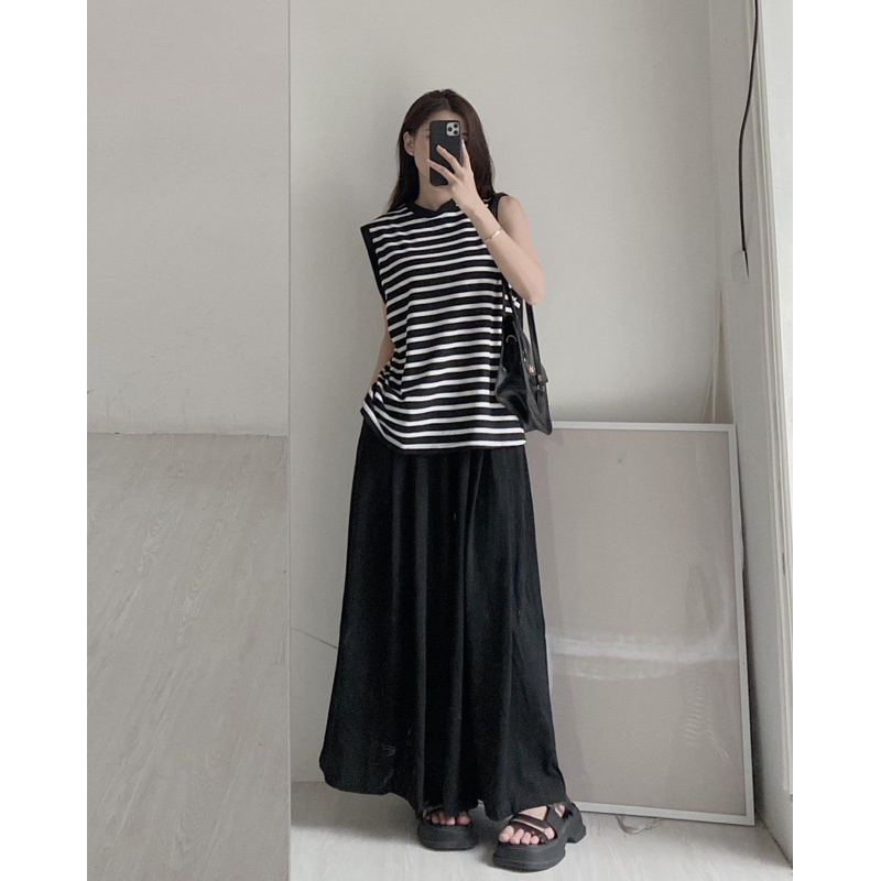 Giới thiệu Áo thun tổ ong sát nách sọc ngang form rộng + quần suông rộng xoè