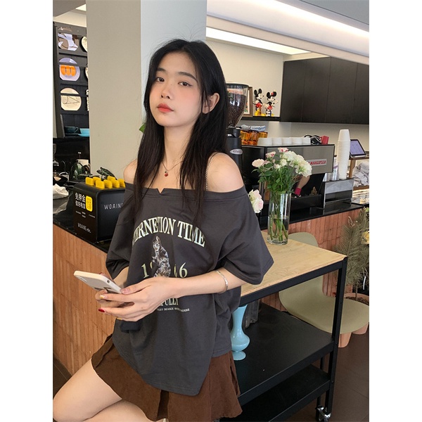 Giới thiệu Áo Thun Trễ Vai Form Rộng Phong Cách Vintage Mỹ Cho Nữ