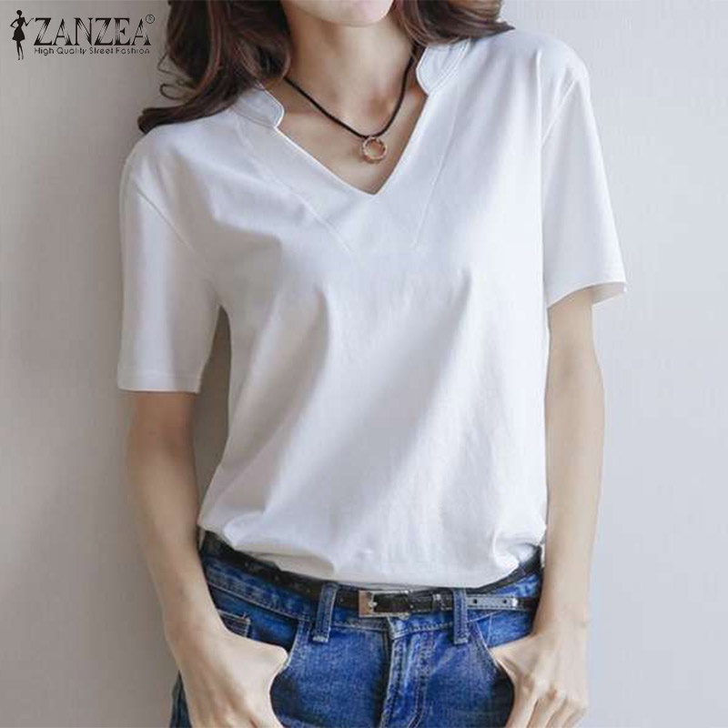 Giới thiệu Áo thun ZANZEA dệt tay ngắn cổ chữ V thời trang Hàn Quốc cho nữ