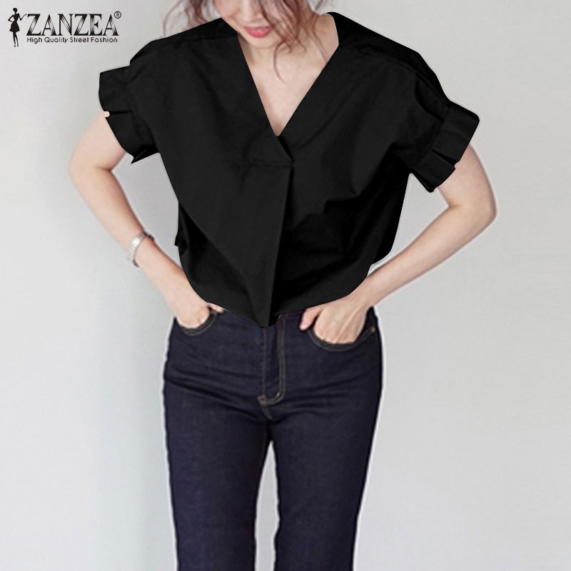 Giới thiệu Áo thun ZANZEA tay ngắn cổ chữ V thời trang phong cách Hàn Quốc cho nữ