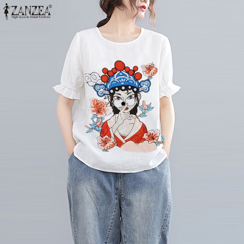 Giới thiệu Áo thun Zanzea tay ngắn cổ tròn in họa tiết phong cách cổ điển dành cho nữ