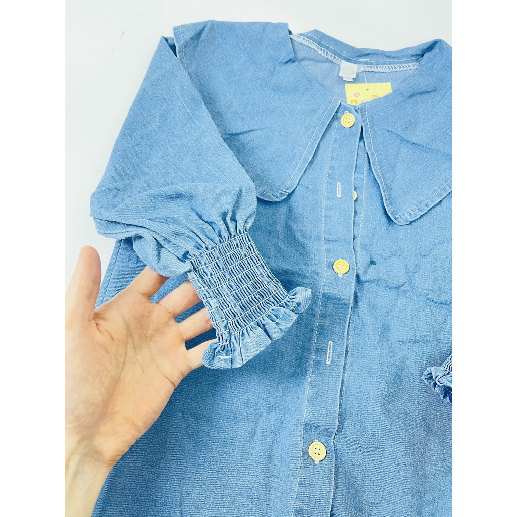 Giới thiệu Áo Váy Jean Bò Cho Bé Gái Tay Chun Công Chúa Cổ Xòe Mẫu Mới 2022 (V4)