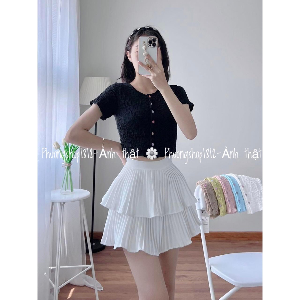 Giới thiệu Áo Xốp thun Nhún Tay Ngắn Cổ Tròn,Nút Nhiều Màu [ ẢNH THẬT] PHUONGSHOP1812
